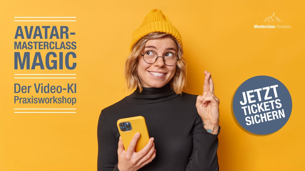 Der Praxisworkshop AVATAR-MASTERCLASS MAGIC vermittelt Basiswissen über Avatare & Video-KI mit sehr hohem Praxisanteil. Teilnehmende lernen die Grundlagen von Video-KI & Avatarerstellung mit ihren unterschiedlichen Tools und Facetten kennen, sondern erstellen erste eigene Photovideos und erfahren Grundlegendes über KI-Videos mit KI-generierten Personen. Der Workshop ist auf Präsenz angelegt und findet in deinem Unternehmen statt.